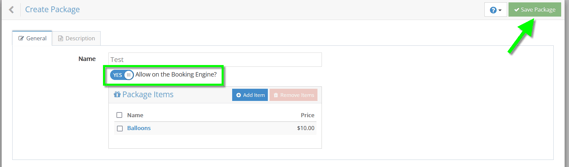 - Open the package and toggle Allow on the Booking Engine to enable it.