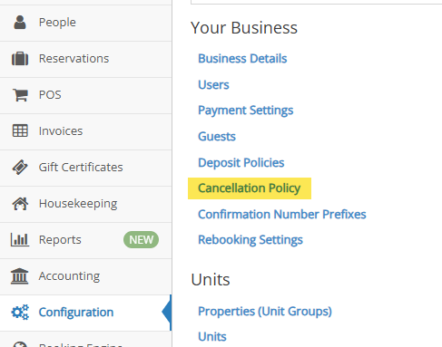 - In rezStream Cloud, navigate to Configuration > Your Business > Cancellation Policy