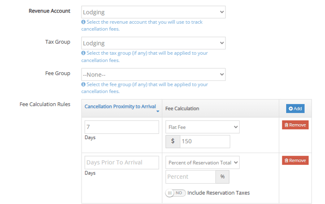- Fee Calculation Rules – Define how the cancellation fee will be calculated.