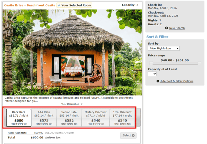 - Guests may see multiple rate options for the same room