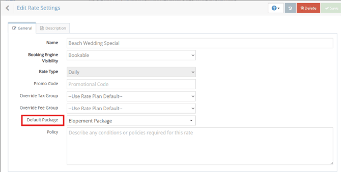 Packages can be attached to a rate plan using a Default Package.