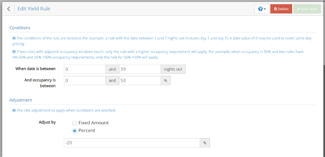 Yield rules are applied automatically based on occupancy and booking window conditions.