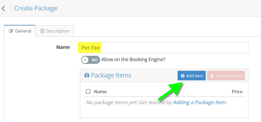 - Enter a descriptive name for the package. This is what guests will see on both the Booking Engine and their Invoice.