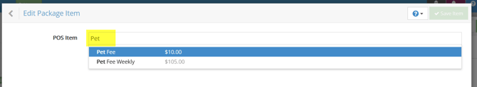 Before creating the package, first establish your Pet Fee as a Point of Sale (POS) Item. For details on how to create a POS item, refer to our article: Creating POS Items.